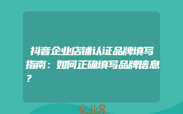 - 抖音企业店铺认证品牌填写指南:如何正确填写品牌信息?