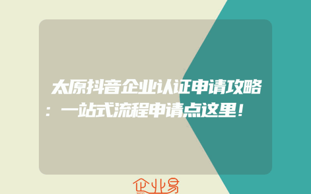 - 太原抖音企业认证申请攻略:一站式流程申请点这里!