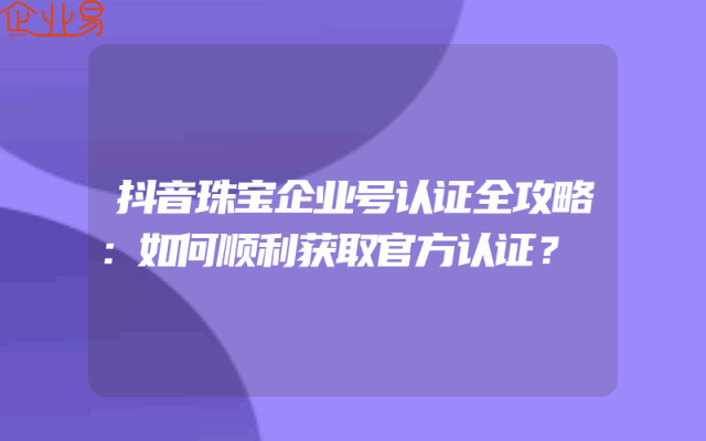 - 抖音珠宝企业号认证全攻略:如何顺利获取官方认证?