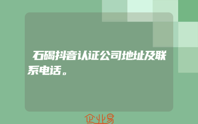 - 石碣抖音认证公司地址及联系电话。
