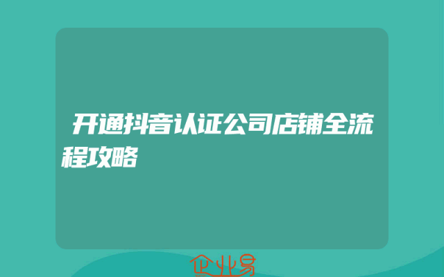 - 开通抖音认证公司店铺全流程攻略