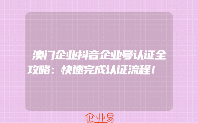 - 澳门企业抖音企业号认证全攻略:快速完成认证流程!
