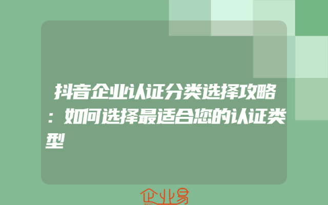 - 抖音企业认证分类选择攻略:如何选择最适合您的认证类型