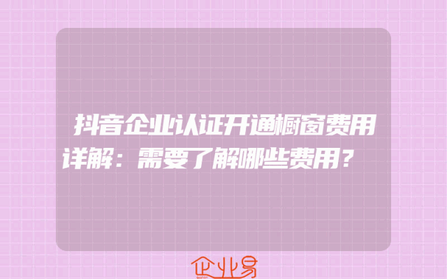 - 抖音企业认证开通橱窗费用详解:需要了解哪些费用?