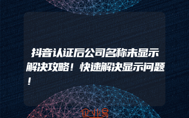 - 抖音认证后公司名称未显示解决攻略!快速解决显示问题!