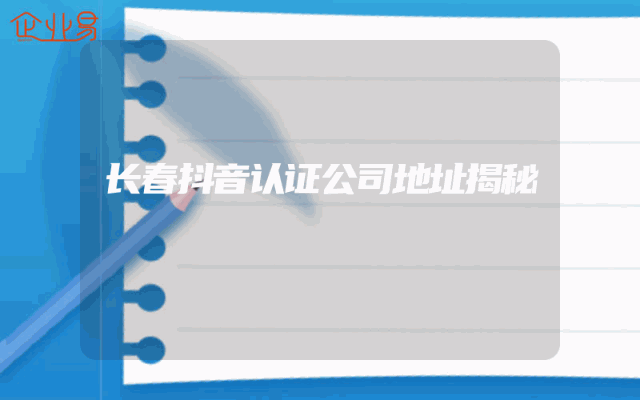 - 长春抖音认证公司地址揭秘地理位置探寻长春抖音认证公司的具体位置一直是大众关注的焦点。该公司作为一个互联网企业巨头在当地设立的分部,其办公地点通常位于城市的核心区域,交通便利,环境优雅。公司办公区域特点随着近年来互联网产业的蓬勃发展,