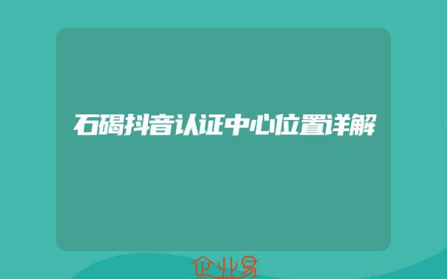 - 石碣抖音认证中心位置详解