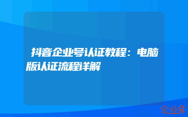 - 抖音企业号认证教程:电脑版认证流程详解