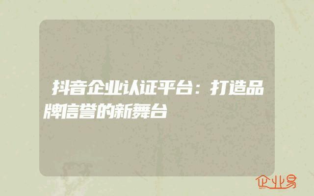 - 抖音企业认证平台:打造品牌信誉的新舞台