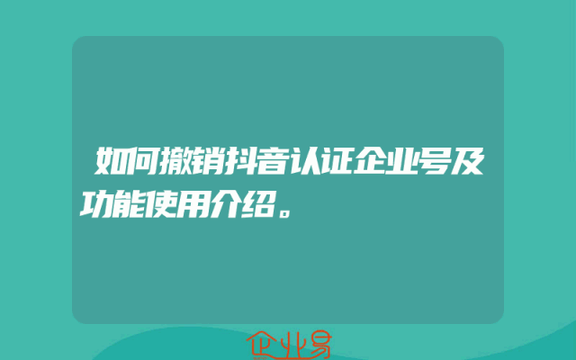 - 如何撤销抖音认证企业号及功能使用介绍。