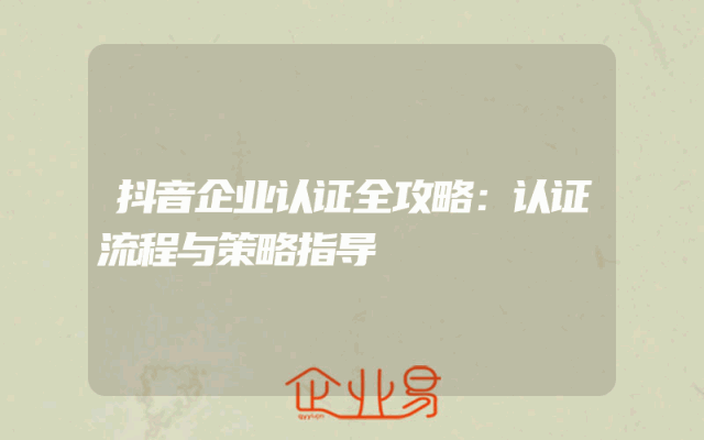- 抖音企业认证全攻略:认证流程与策略指导