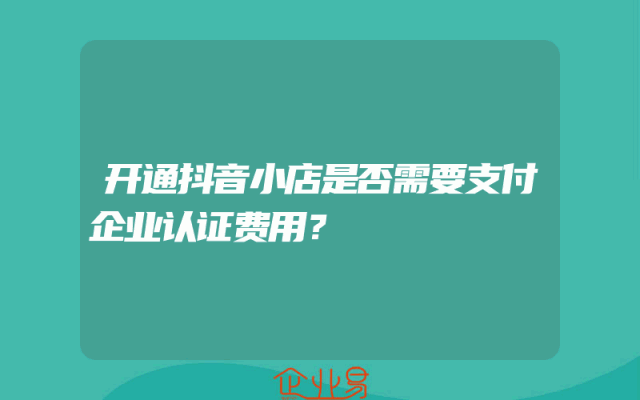 - 开通抖音小店是否需要支付企业认证费用?
