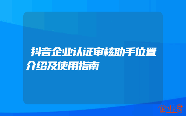 - 抖音企业认证审核助手位置介绍及使用指南