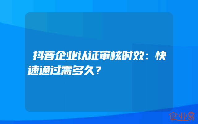 - 抖音企业认证审核时效:快速通过需多久?
