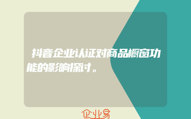 - 抖音企业认证对商品橱窗功能的影响探讨。
