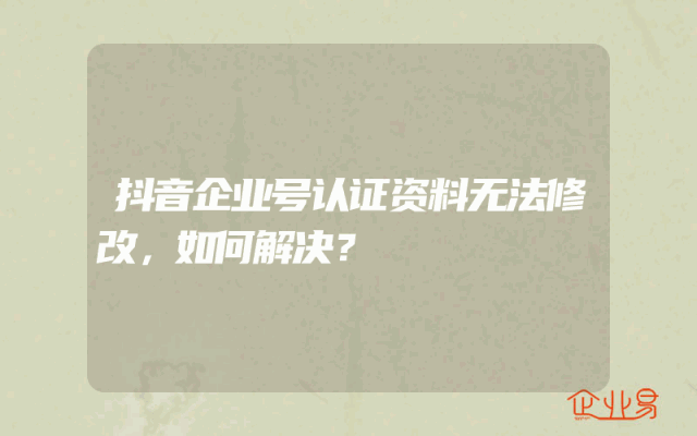 - 抖音企业号认证资料无法修改,如何解决?