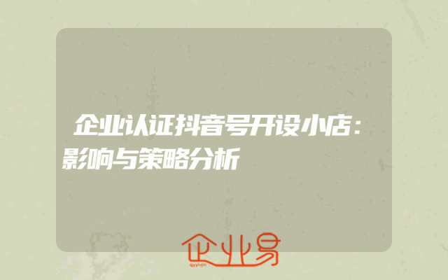- 企业认证抖音号开设小店:影响与策略分析