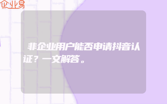 - 非企业用户能否申请抖音认证?一文解答。