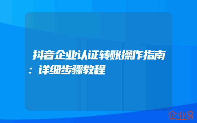 - 抖音企业认证转账操作指南:详细步骤教程