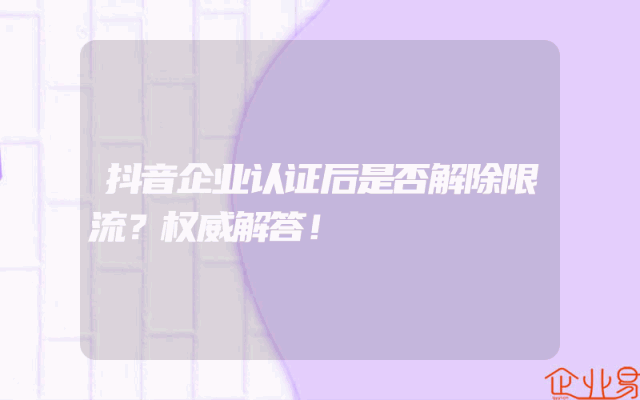 - 抖音企业认证后是否解除限流?权威解答!