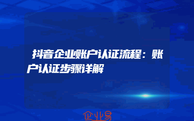 - 抖音企业账户认证流程:账户认证步骤详解