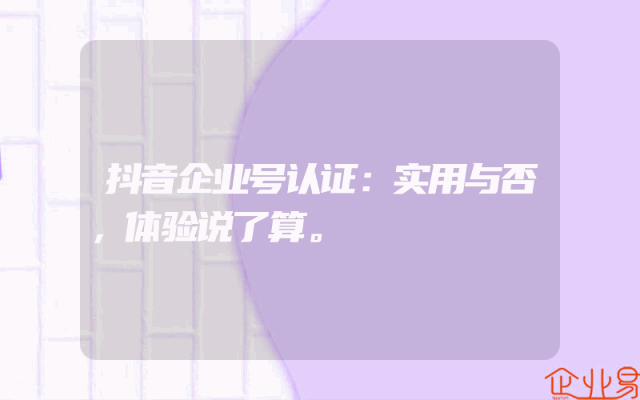 - 抖音企业号认证:实用与否,体验说了算。