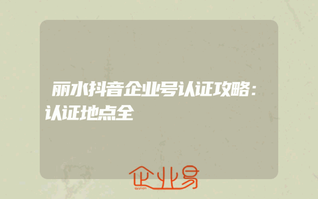 - 丽水抖音企业号认证攻略:认证地点全解析一、认证地点概述丽水地区的抖音企业号认证是企业在抖音平台上开展业务的重要步骤。抖音企业号认证一般可在官方指定地点进行,包括线上和线下两种方式。认证地点选择直接影响到认证的效率和成功率,因此企业在选择时需