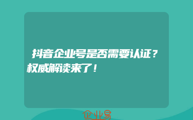 - 抖音企业号是否需要认证?权威解读来了!一、抖音企业号概述抖音作为一款流行的短视频平台,吸引了众多企业和商家的目光。抖音企业号作为企业在抖音平台上的官方账号,不仅可以帮助企业扩大品牌影响力,还能直接与消费者互动,实现营销目标。因此,越