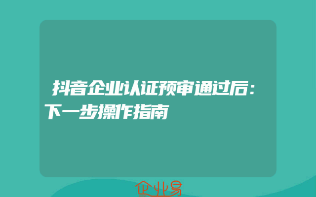 - 抖音企业认证预审通过后:下一步操作指南一、了解预审通过的意义当您的抖音企业认证预审通过后,意味着您的企业资料、资质等已经初步符合抖音平台的要求,可以进入到下一个阶段的认证流程。这是一个重要的里程碑,预示着您的企业账户即将获得官方认证,能够更