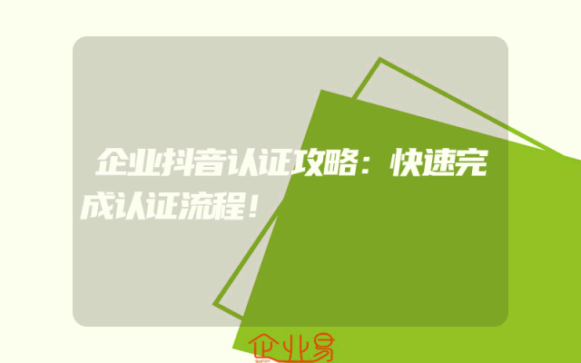 - 企业抖音认证攻略:快速完成认证流程!一、了解抖音企业认证的重要性在当今数字化时代,抖音作为一款领先的短视频社交平台,拥有巨大的用户基数和广阔的商业前景。企业进行抖音认证,不仅能提升品牌形象,增强用户信任度,还能享受到一系列平台提供的特权功能