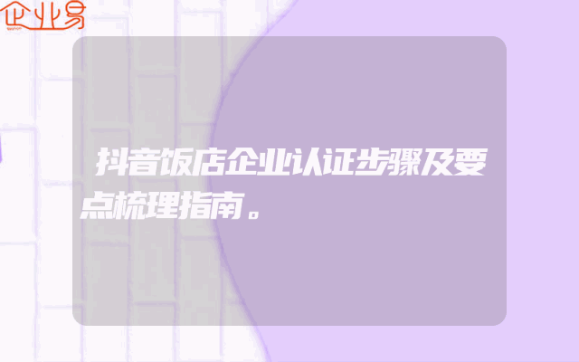 - 抖音饭店企业认证步骤及要点梳理指南。