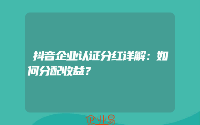 - 抖音企业认证分红详解:如何分配收益?一、抖音企业认证的重要性在当今数字化时代,抖音已经成为一个全球知名的社交媒体平台,拥有庞大的用户群体。对于企业而言,进行抖音企业认证不仅能够提升品牌形象,增加曝光率,还能获得更多与消费者互动的机会。而企业