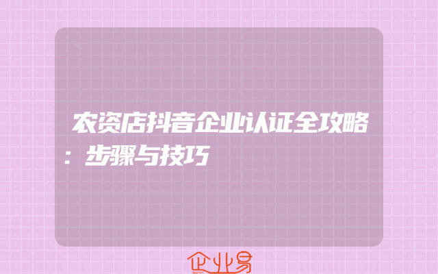 - 农资店抖音企业认证全攻略:步骤与技巧
