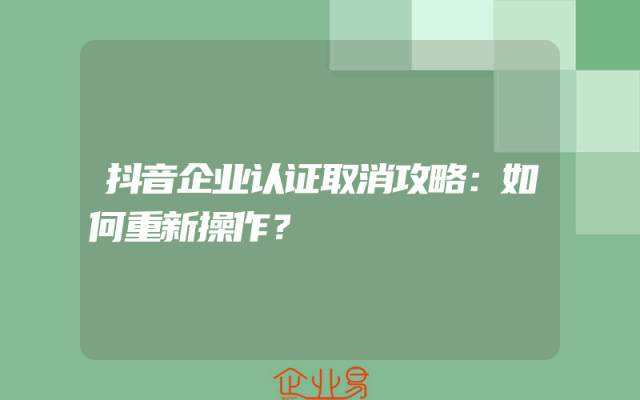 - 撤销抖音企业认证申请的步骤与操作指南一、了解撤销企业认证的原因在考虑撤销抖音企业认证之前,必须先明确你的动机。可能是因为企业战略调整、不再需要抖音平台的企业宣传,或者是对认证过程产生了疑虑等。不同的原因可能涉及到不同的操作步骤和需要注意的事