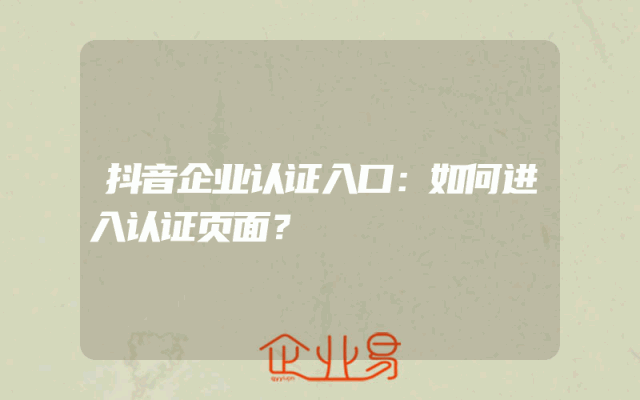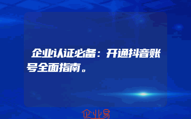 - 抖音企业认证入口:如何进入认证页面?一、抖音企业认证的重要性在当今数字化时代,抖音作为一款流行的短视频平台,吸引了大量用户的关注。对于企业而言,拥有一个经过认证的抖音企业账号,不仅可以提升品牌形象和知名度,还能获得更多的商业机会和特权。因此