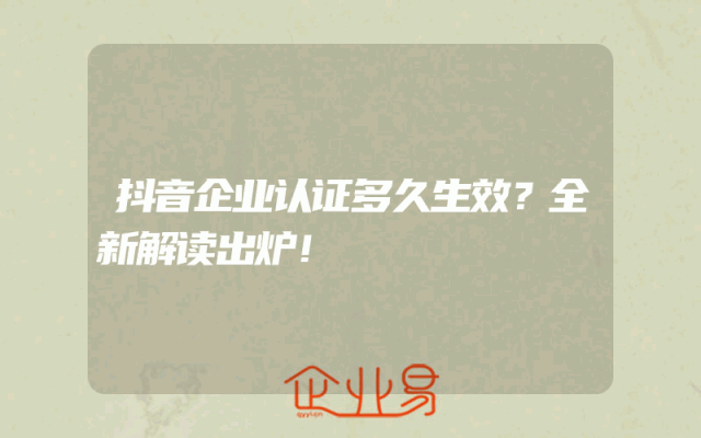 - 抖音企业认证多久生效?全新解读出炉!