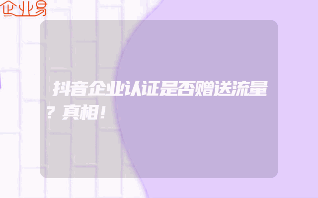 - 抖音企业认证是否赠送流量?真相!