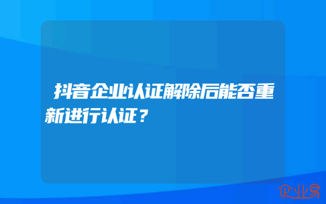 - 抖音企业认证解除后能否重新进行认证?