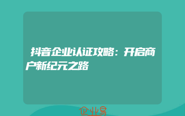 - 抖音企业认证攻略:开启商户新纪元之路