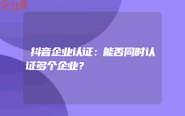 - 抖音企业认证:能否同时认证多个企业?