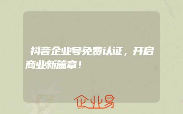 - 抖音企业号免费认证,开启商业新篇章!