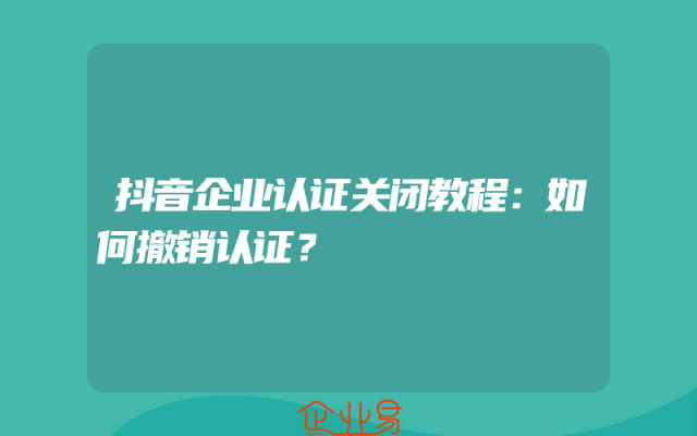 - 抖音企业认证关闭教程:如何撤销认证?