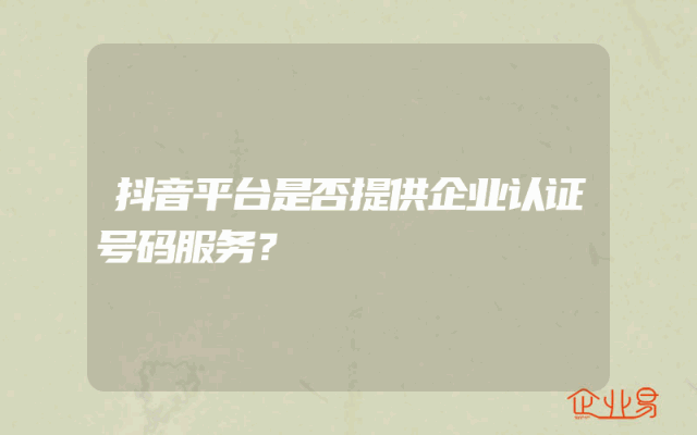 - 抖音平台是否提供企业认证号码服务?