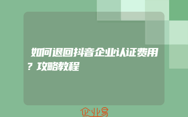 - 如何退回抖音企业认证费用?攻略教程了解抖音企业认证费用在开始探讨如何退回抖音企业认证费用之前,我们先来了解一下抖音企业认证的费用情况。根据抖音官方规定,企业认证需要支付一定的费用,这个费用是认证过程中必要的成本之一。具体的费用数额可能会因为