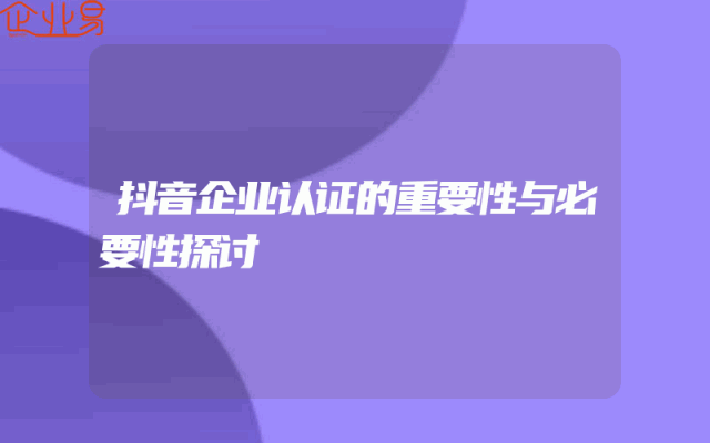 - 抖音企业认证的重要性与必要性探讨