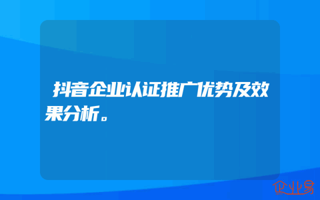 - 抖音企业认证推广优势及效果分析。
