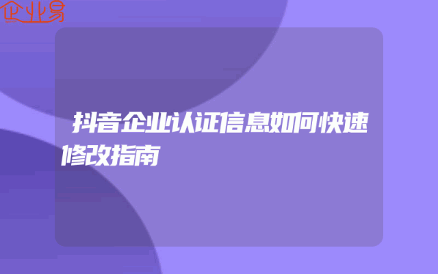 - 抖音企业认证信息如何快速修改指南一、了解抖音企业认证的重要性在当今数字化时代,抖音作为一款领先的短视频社交平台,吸引了大量企业和个人的入驻。对于企业来说,拥有一个经过认证的抖音企业账号,不仅可以提升品牌形象和信誉度,还能获得更多曝光和业务拓