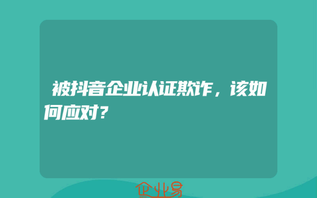 - 被抖音企业认证欺诈,该如何应对?