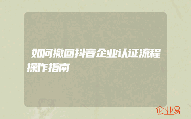 - 抖音企业认证流程操作指南——撤回流程解析一、了解撤回企业认证的重要性随着抖音平台的发展,越来越多的企业选择在抖音进行认证,以增强品牌影响力。但在某些情况下,企业可能需要撤回已经完成的认证。了解如何撤回企业认证同样重要,它关乎企业的权