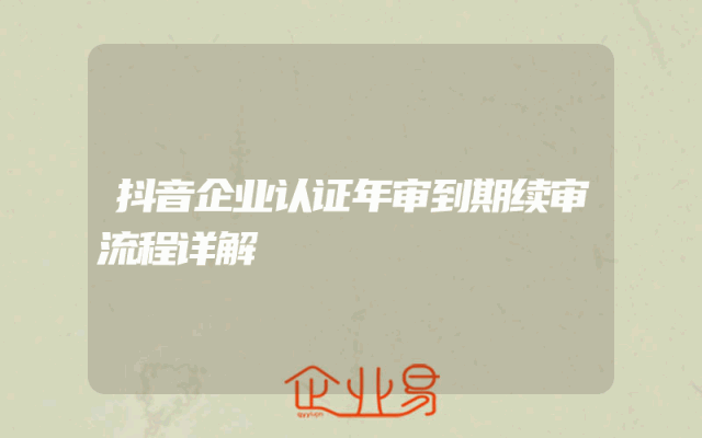 - 抖音企业认证年审续审流程详解一、了解年审到期时间首先,抖音企业认证用户需要明确自己的年审到期时间。这一信息可以在抖音平台的账户管理或企业认证中心查看。了解到期时间后,应提前做好准备,以免因逾期影响企业的正常运营。二、准备续审材料在年审到期前